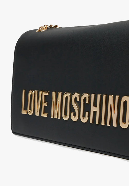 LOVE MOSCHINO - Borsa A Spalla Lettering Soft Touch Nero Oro