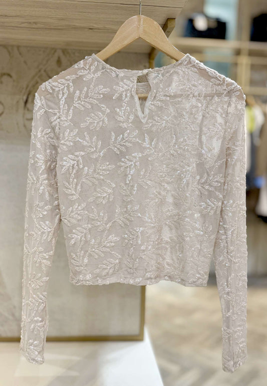 MOTEL - T-Shirt Paillettes Manica Lunga Panna