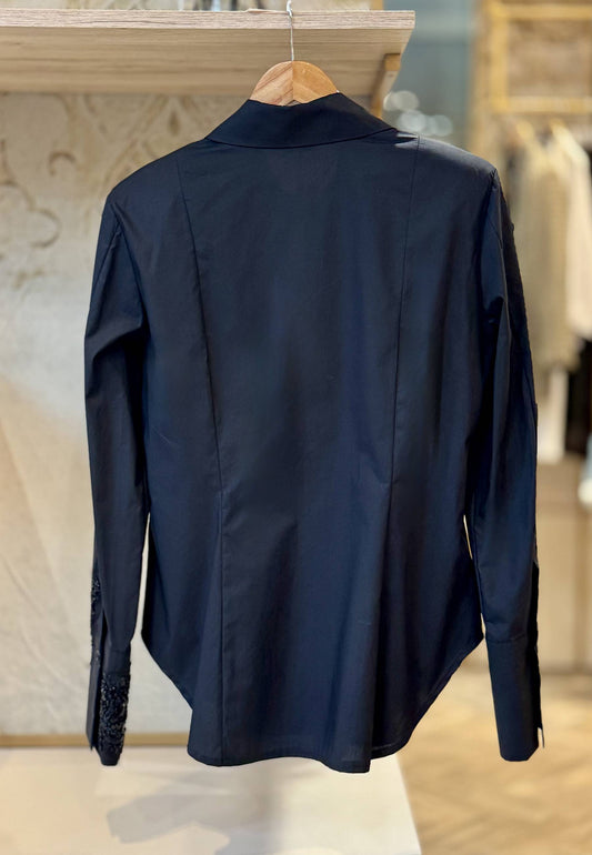 MOTEL - Camicia In Popeline E Strass Nero