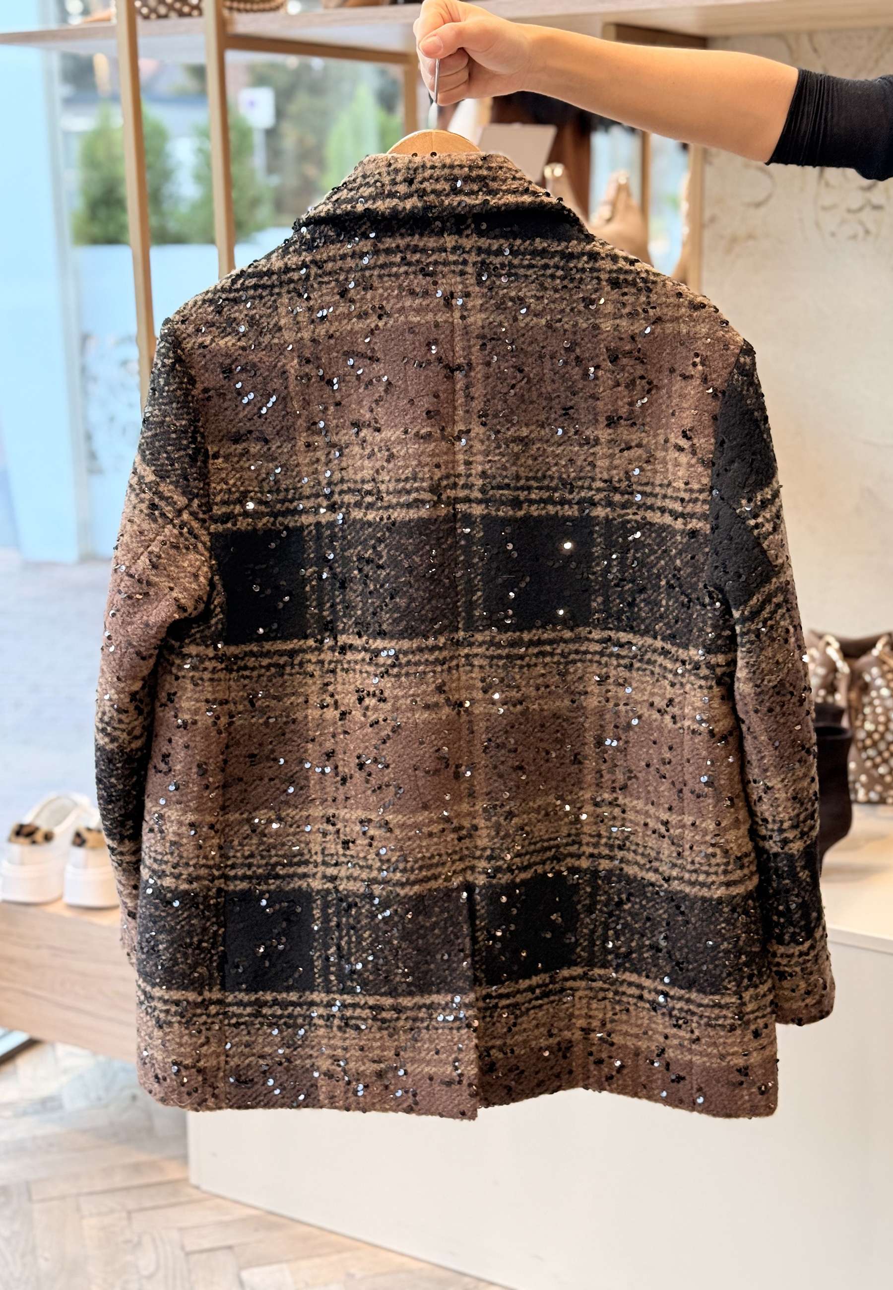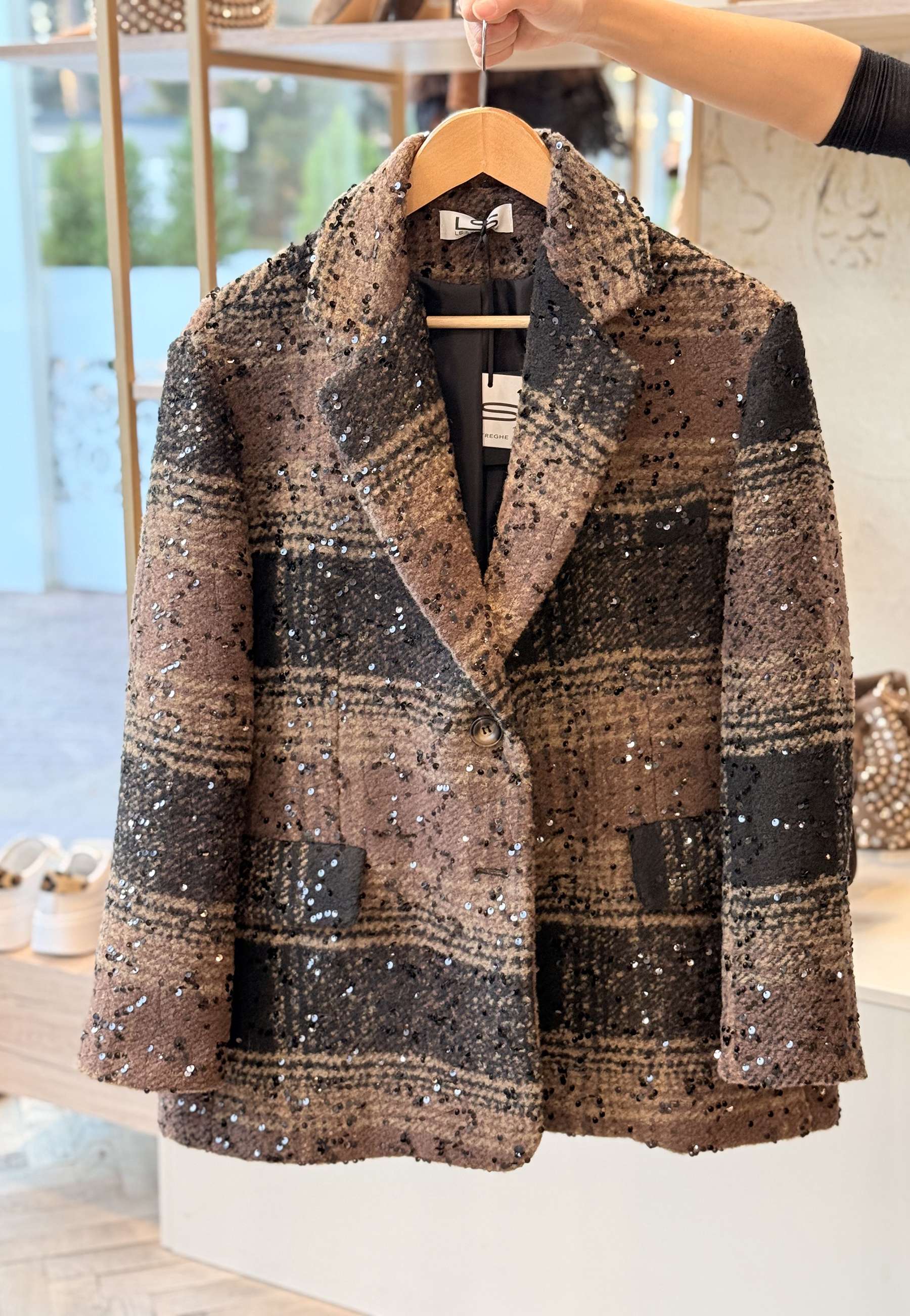 LE STREGHE - Giacca Over Monopetto Check Paillettes
