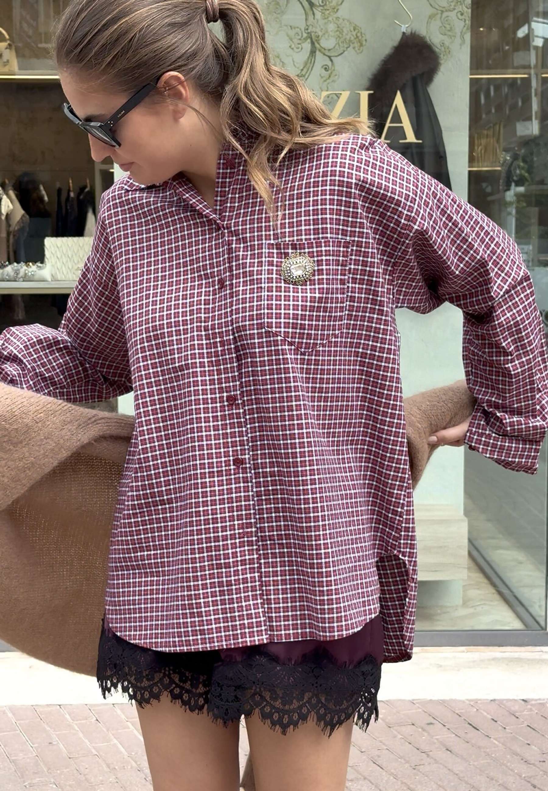 MOTEL - Camicia A Quadri Con Spilla Rosso