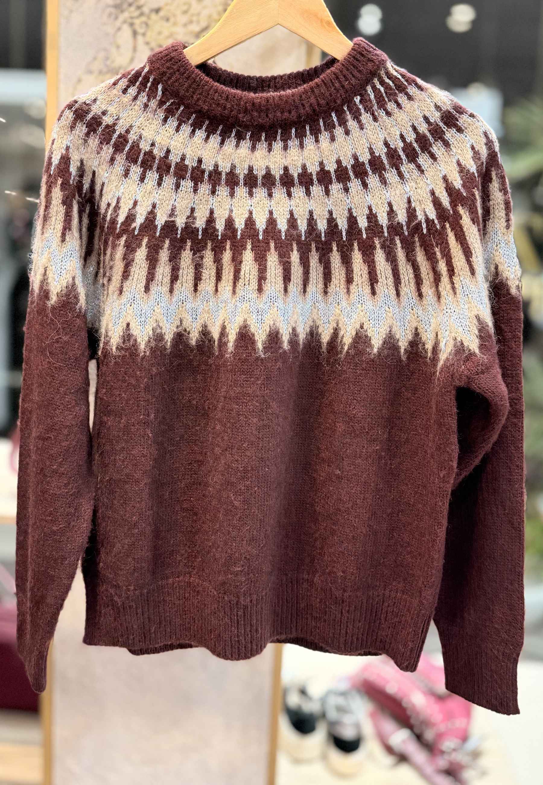 MOTEL - Maglione Girocollo Jacquard Bordeaux