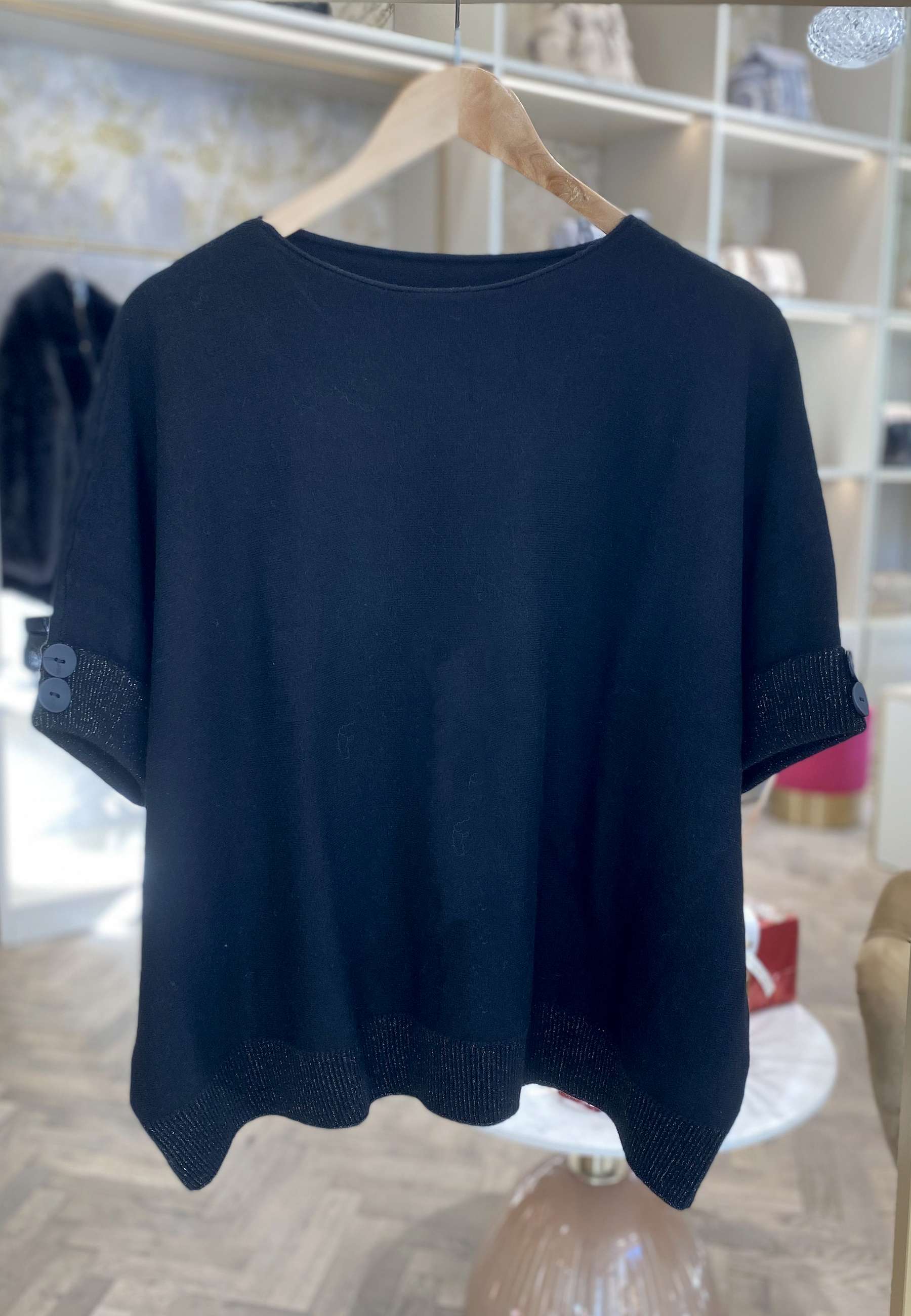 NUNZIA - Maglioncino Over Manica Corta Nero