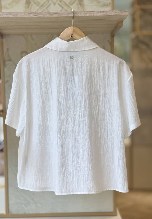 PLEASE - Camicia Crop Bianco Seta